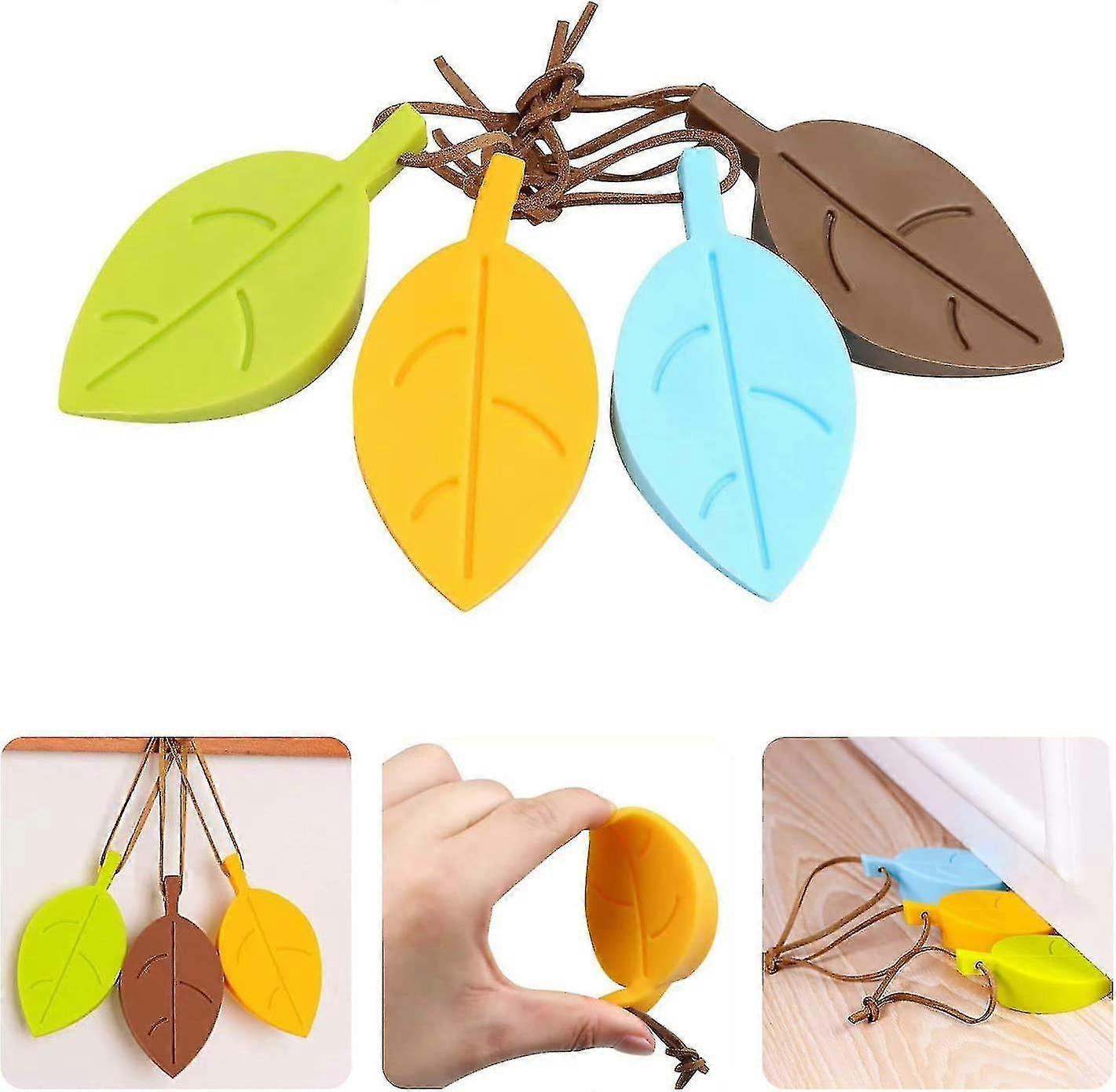 Silicone Door Stopper, 4 Pcs Leaves Cartoon Style Window/door Stops With Lanyard