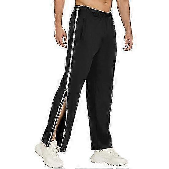 Loose-Fitting Side Zip Men's Sports Pants with Wide Leg Elastic Waistband Soft and Breathable Solid Color Design for Gym Wear