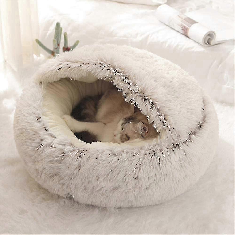 Christmas Fluffy Cat Bed, Round, Soft Plush, Den With Hood, Cat Bed, For The Winter, Warm, Sleeping Pillow, Non-slip, Machine Washable, For Cats And P