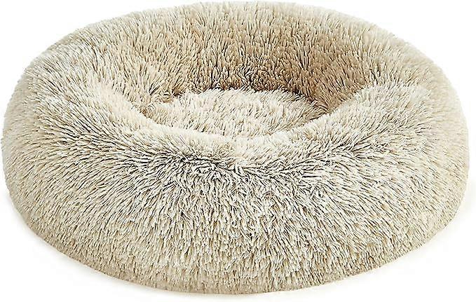 Feandrea fluffy dog bed, cat bed, donut cushion, washable, removable padding in the middle, long plush, 60 cm diameter, light gray PGW038G01