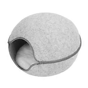 Cat Cave Bed Detachable Washable Semi Enclosed Felt Kitten Hideout Bed with Cushion for All Seasons