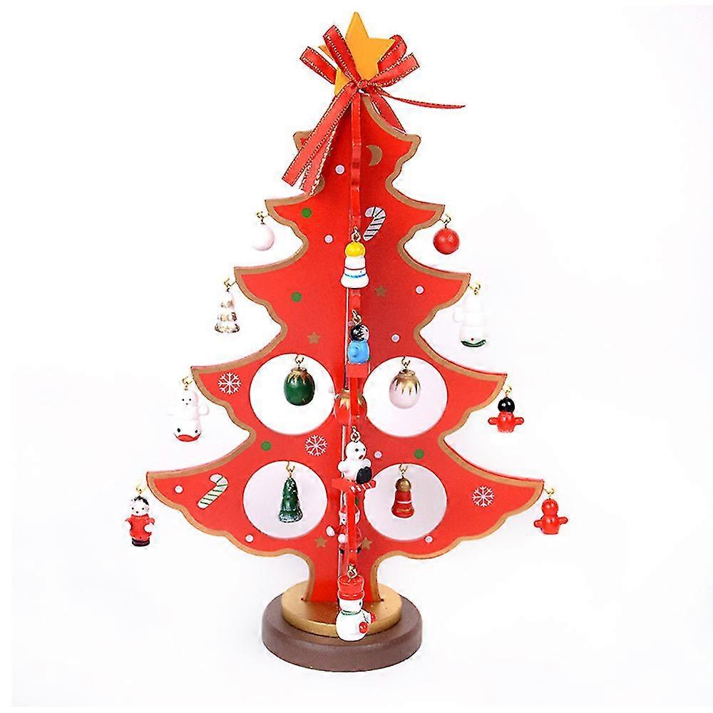 Funny Desktop Wooden Christmas Tree Decor Christmas Toy Set With Mini Ornaments
