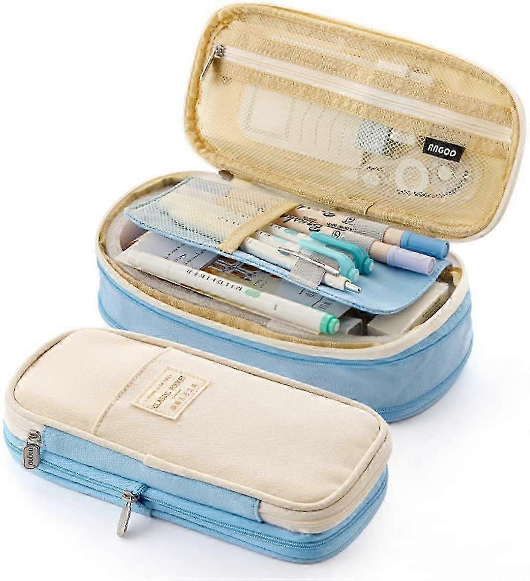 Capacity Pencil Case for Girls Boys Pen Bag Holder with Zipper School Stationery Storage Bag Makeup Cosmetic Bag for Teens Students Adults (Light Blue