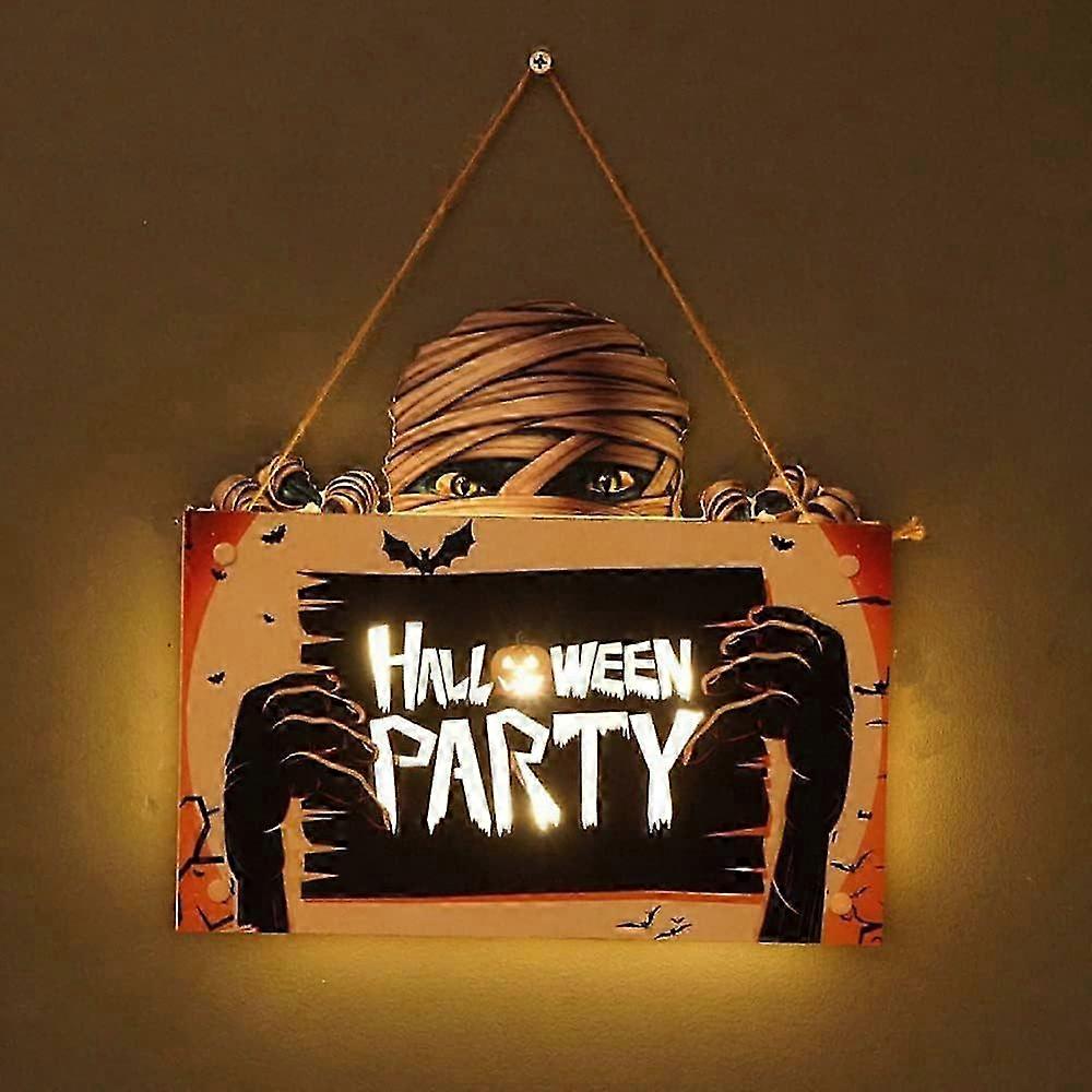 Happy Halloween Hanging Signs Decorations,LED Ambient Light Pumpkin Ghost Witch Logo Halloween Themed Wooden Door Hanging Decor for Home Office School