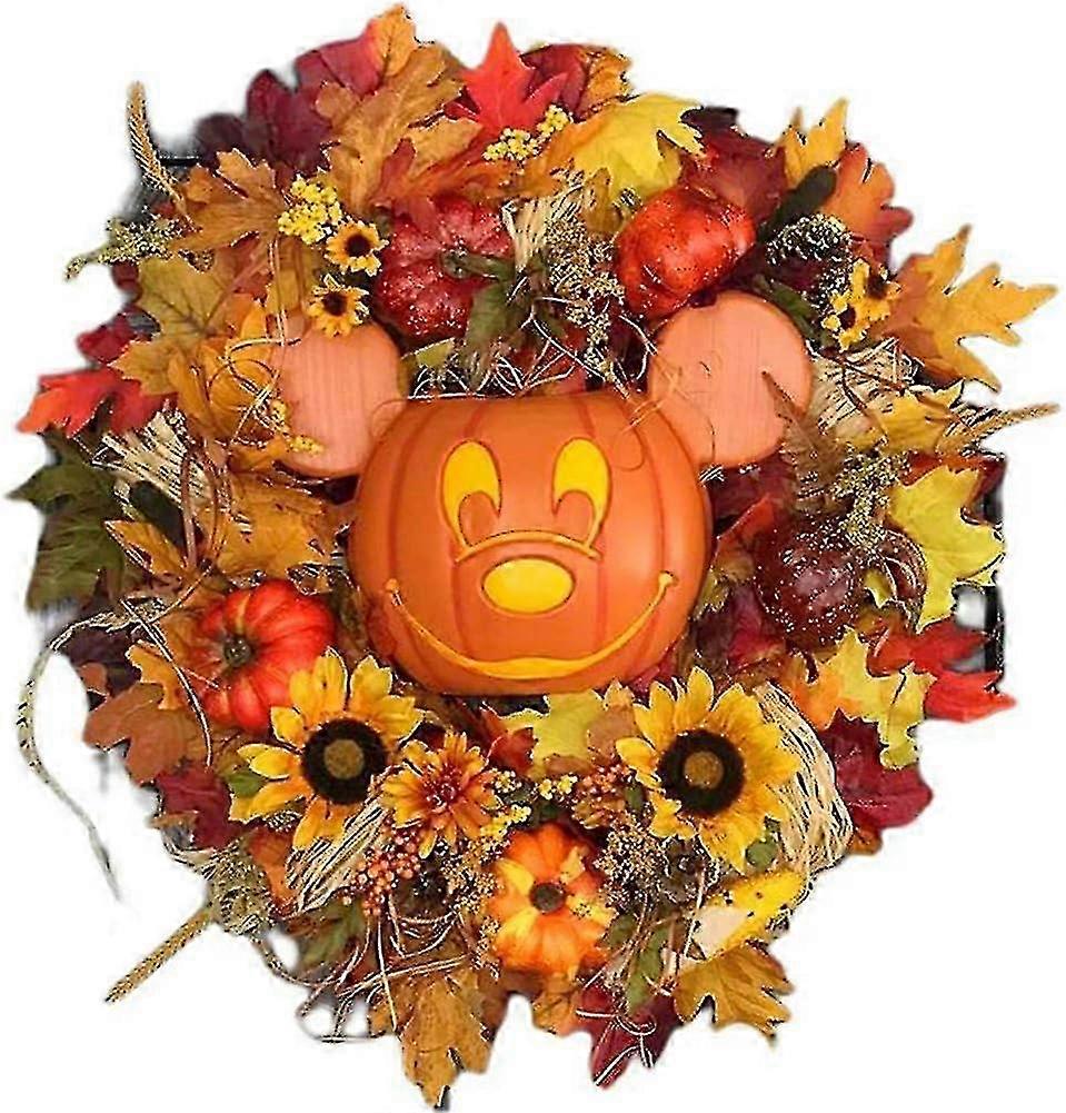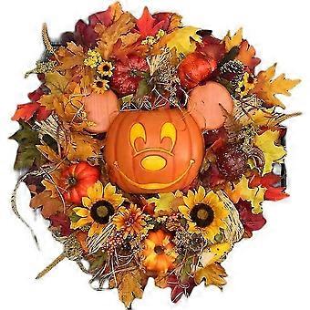Fall Pumpkin Door Wreath, Pumpkin Wreath Decor, Artificial Pumpkin Berries Maple Leaves Wreath, Fall Thanksgiving Halloween Decoration Indoor Outdoor