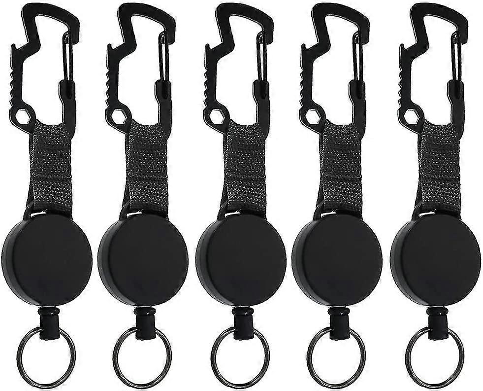 Retractable Key Chains, 5 Pieces Retractable Key Chain Badge Holder Retractable Retractable Reel 60cm Steel Cable, Black
