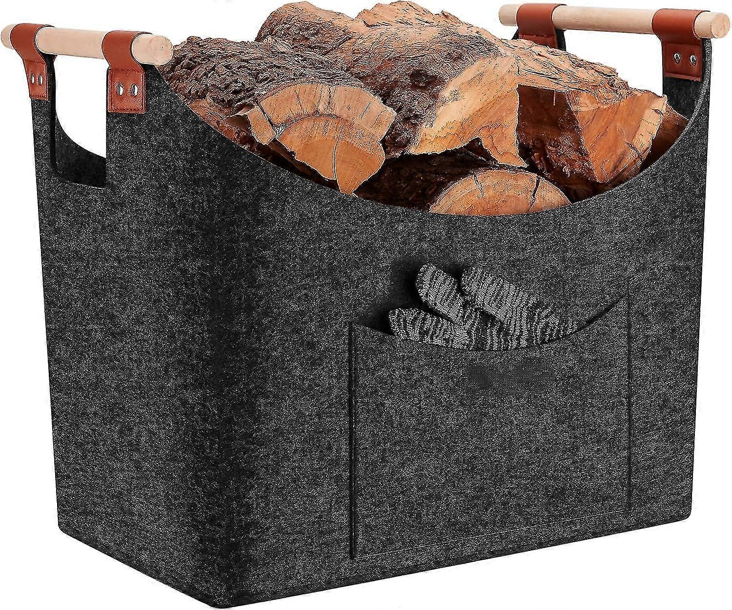 Firewood Basket Felt Basket 5 Mm Extra Thick Felt And Reinforced Handle Foldable Wood Basket Felt Bag As Storage Basket For Shopping, Wood, Newspaper