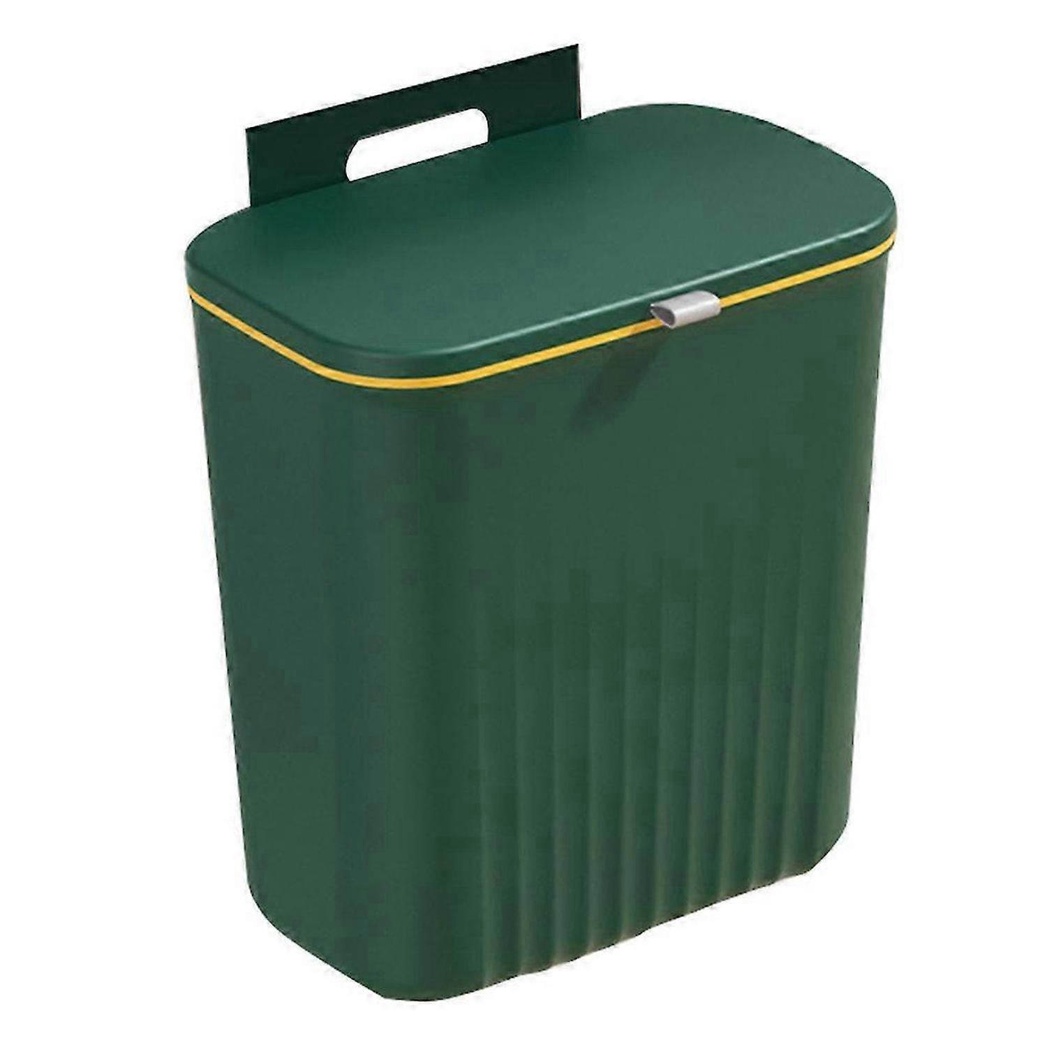Kitchen Trash Can Household Cabinet Door Hanging Sliding Cover Storage Bucket Trash Can Wall-Mounted Trash Can Green