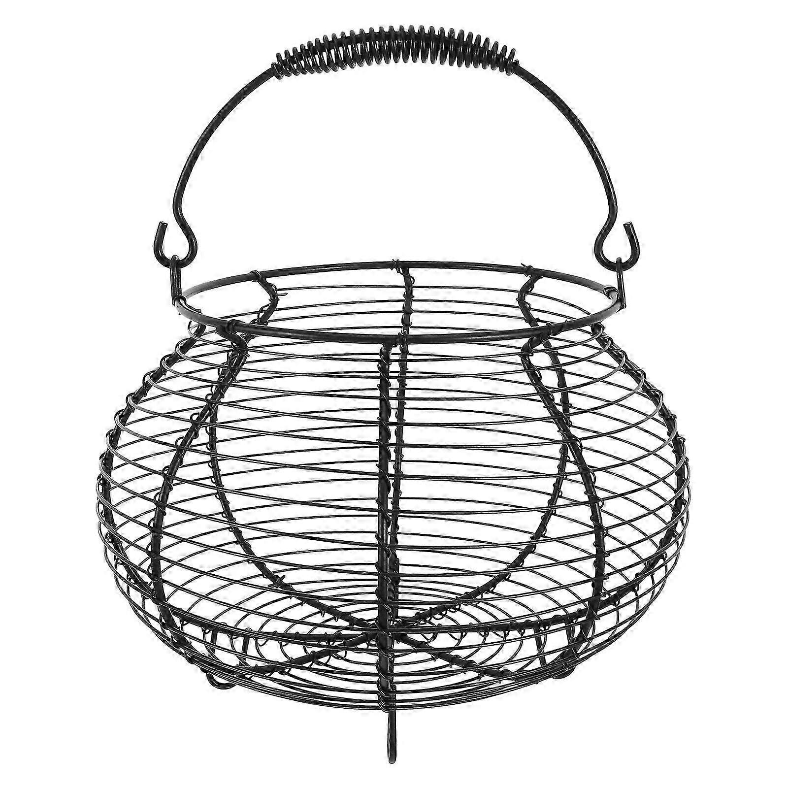 Round Wire Egg Basket With Handle Metal Egg Storage Holder For Kitchen Use Vintage Container For Fruits Grocery And Vegetables20.00X20.00X13.00CMBlack