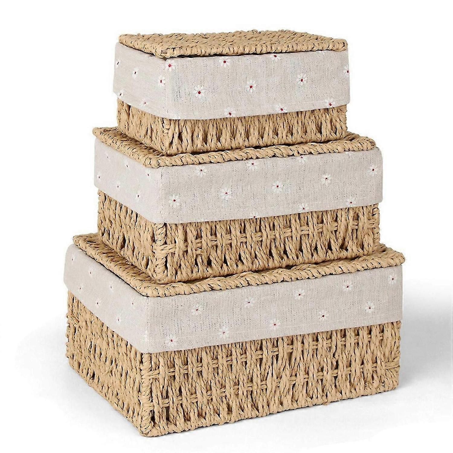 Storage Basket, Pack of 3 Storage Basket with Lid, Woven Basket