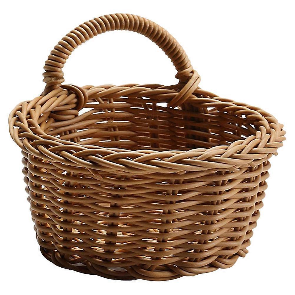 Woven Rattan Wall Storage Basket, Multi Function Hanging Organizer for Kitchen, Flowers, and Storage, Light Brown, Wall Mounted, Natural Style