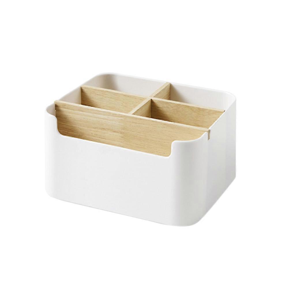 Wood and Plastic Multi Compartment Desktop Storage Basket with Partition for Makeup, Remote Control, and Household Organization