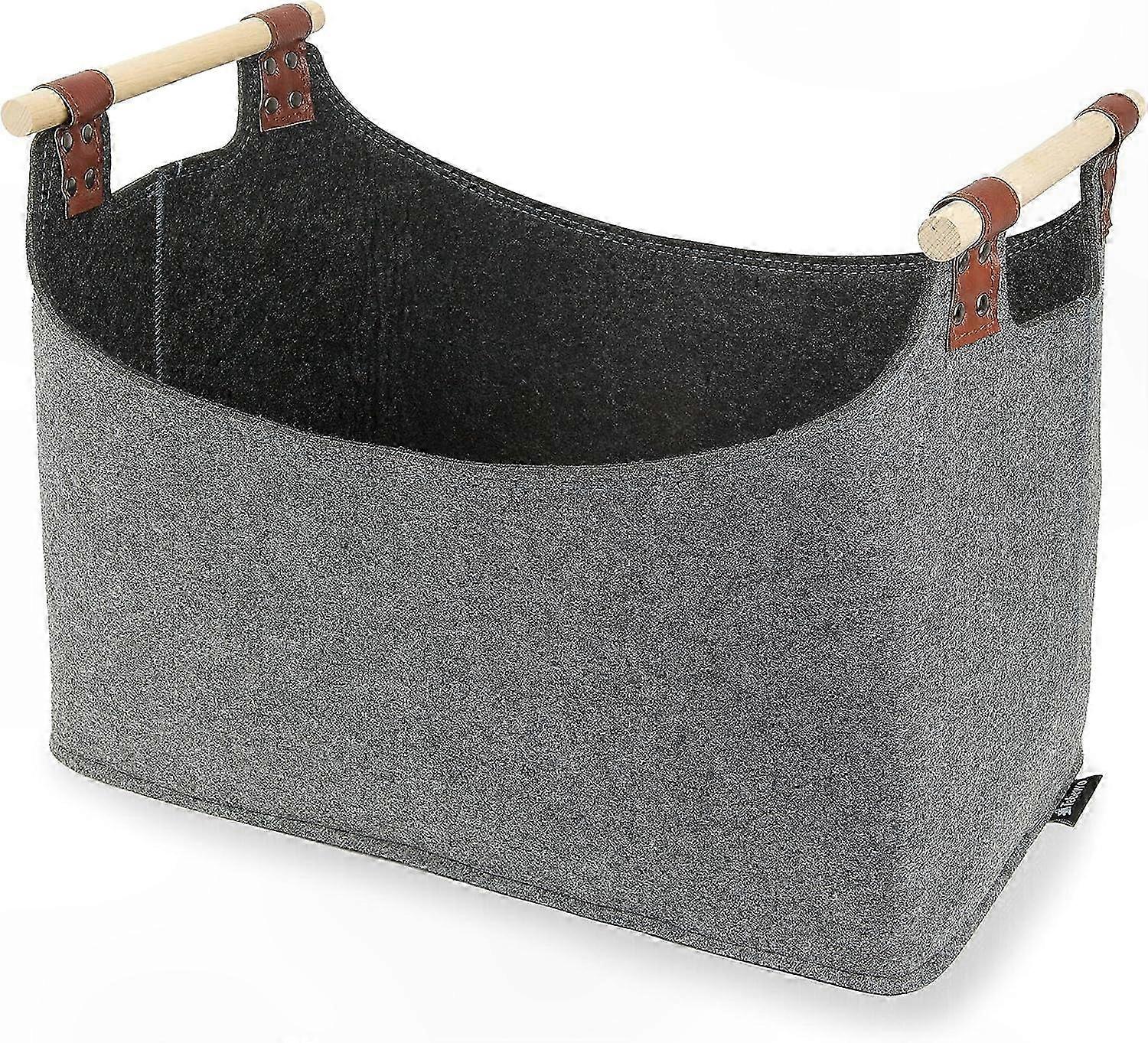 Large Felt Log Storage Basket with Handles, Foldable Fireplace Wood Organizer, Dark Grey Toy-Compatible Holder