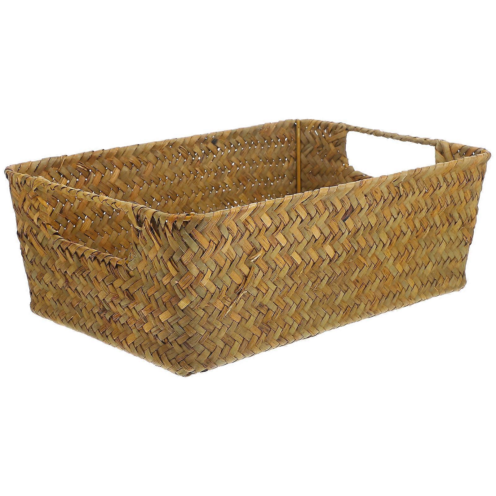 Straw Woven Storage Basket 2pcs Desktop Organizer Household Supplies Container