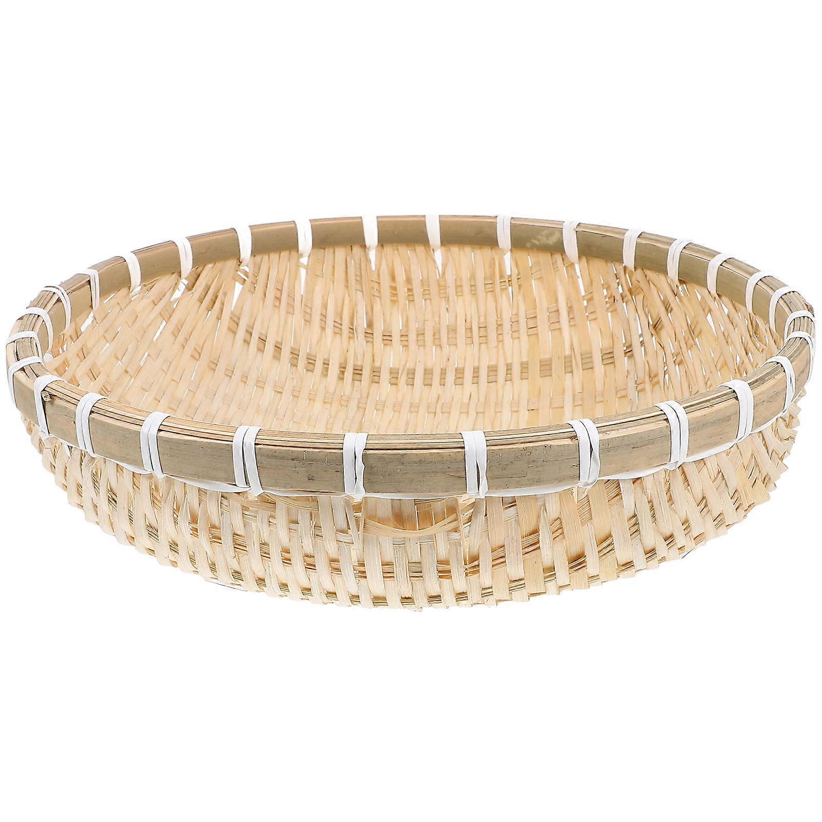 Handwoven Bamboo Storage Basket with Drainage Holes for Kitchen Use 12.5 inches diameter