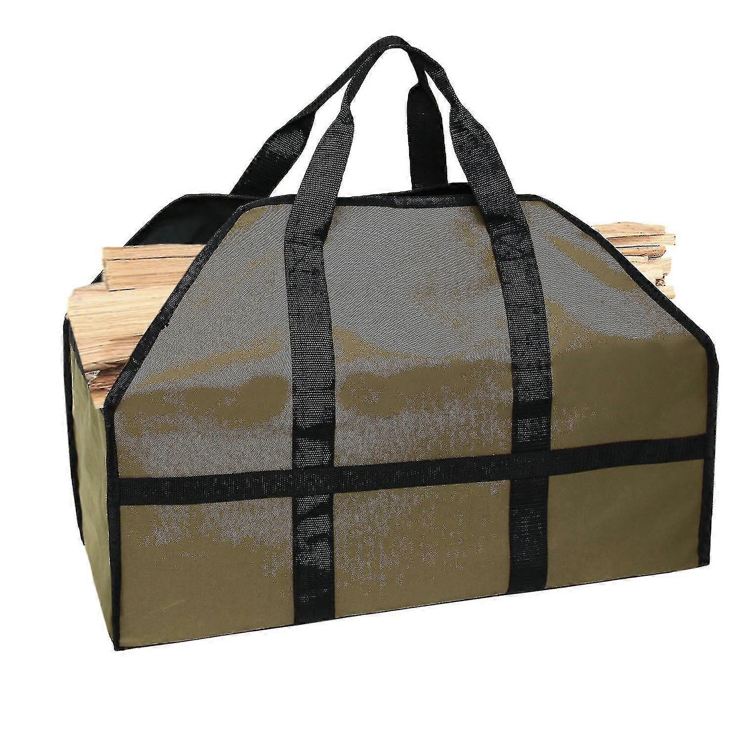 Large Log Basket, Bag Holder Extra Large Log Basket Holder Canvas Bag Log Carrying Wood Fire Door For Wood, 61x29x41.5cm, Shallow Khaki