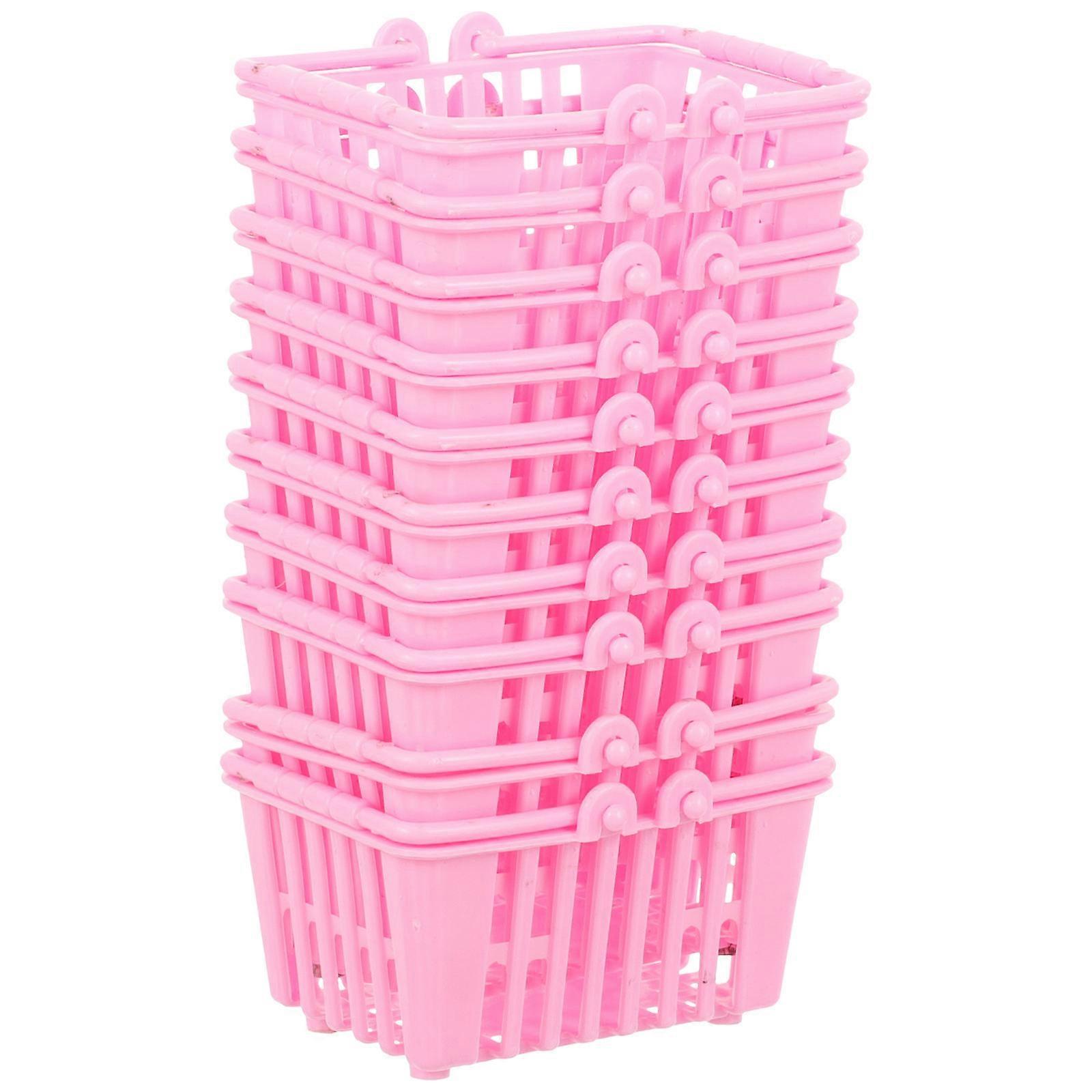 Pink Mini Shopping Basket with Handle for Decoration Miniature Plastic Storage Basket 10 Pieces