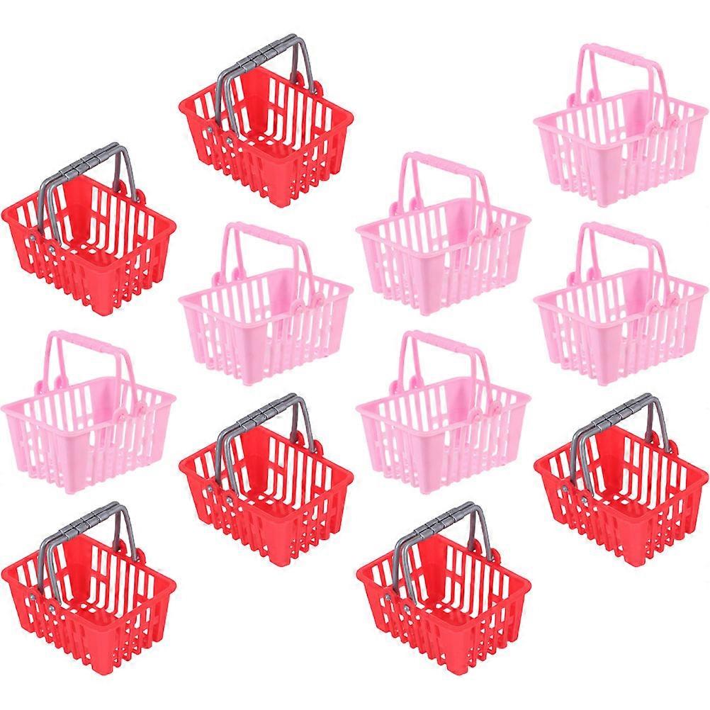 Shopping Basket Toy Mini Basket Model Photography Props Plastic Assorted Color for Decoration 12Pcs