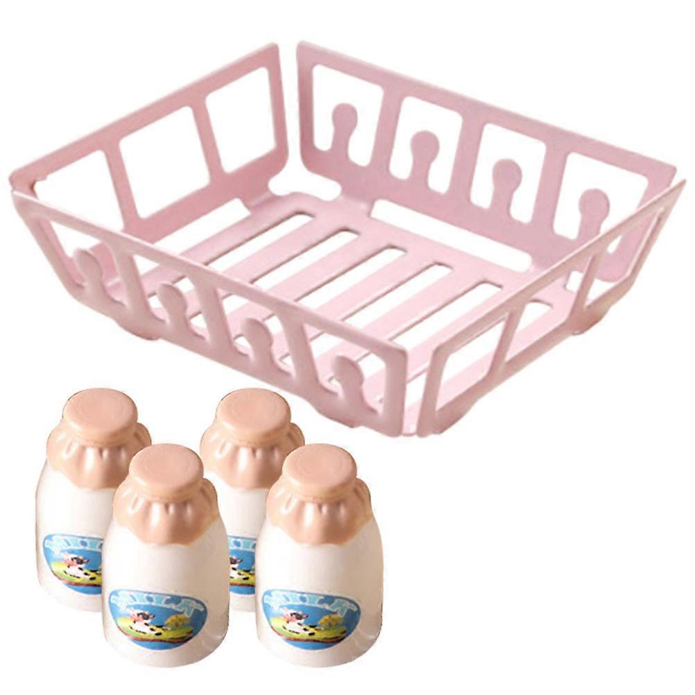 Miniature Milk Basket for Decor Assorted Color Resin and Metal Material Small Storage Basket Model