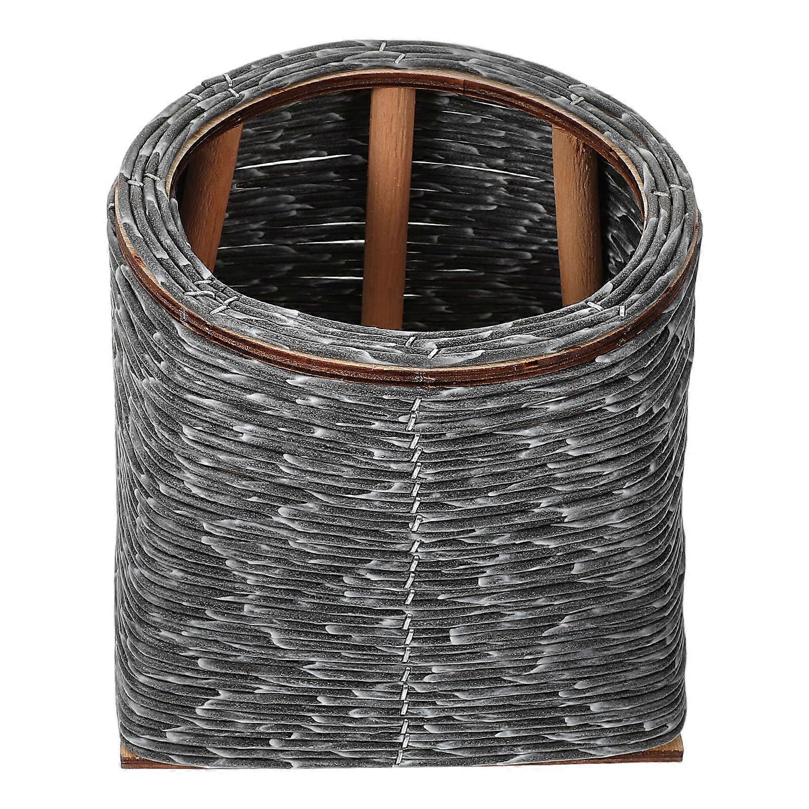 Dark Grey Woven Flower Basket for Home Indoor Plant Holder Plastic and Wood Planter 6.5 Inches