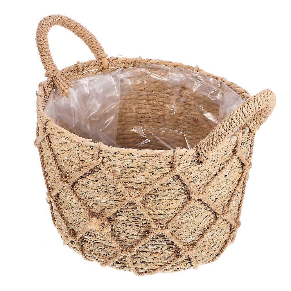 Beige HandWoven Flower Basket with Handle for Daily Use MultiFunctional Decorative Straw Basket