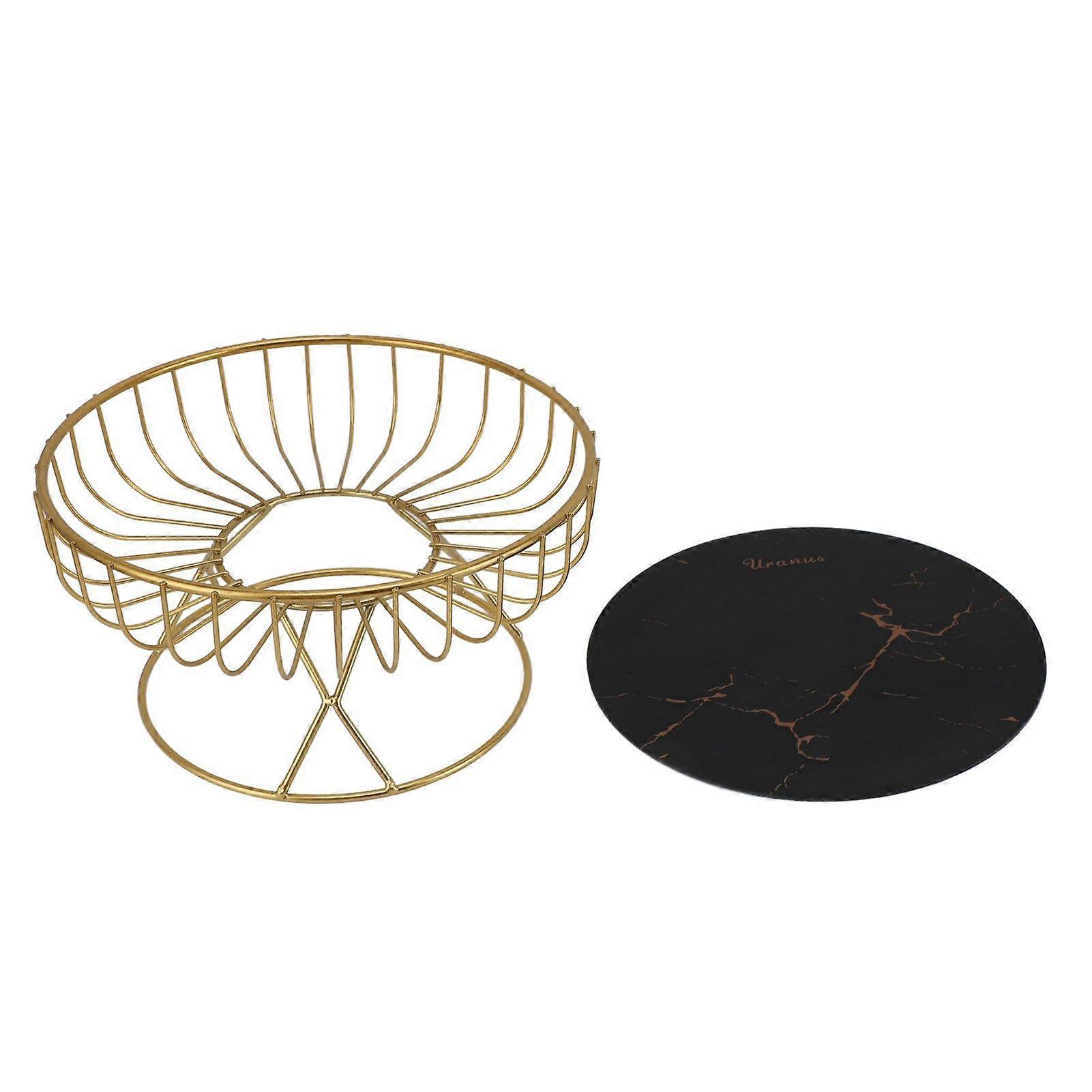 Round Fruit Basket Large Capacity Hollow Metal Fruit Bowl Stand for Dessert Snacks Bread S Black Background with Gold Stripes