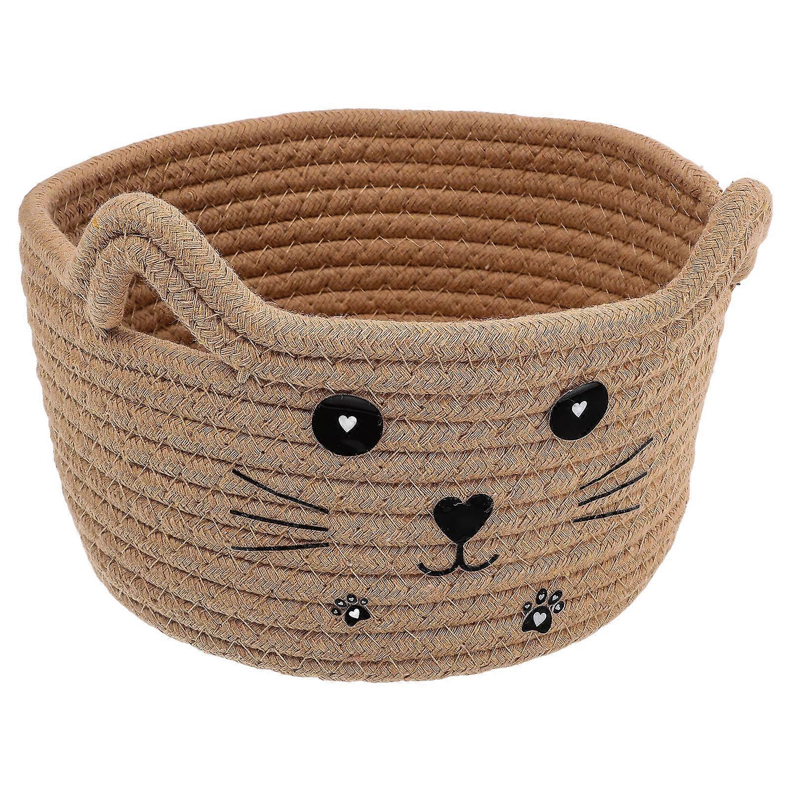 Cotton Rope Woven Basket with Cat Design, Soft Material Space Saving Storage Organizer for Home and Office Decor