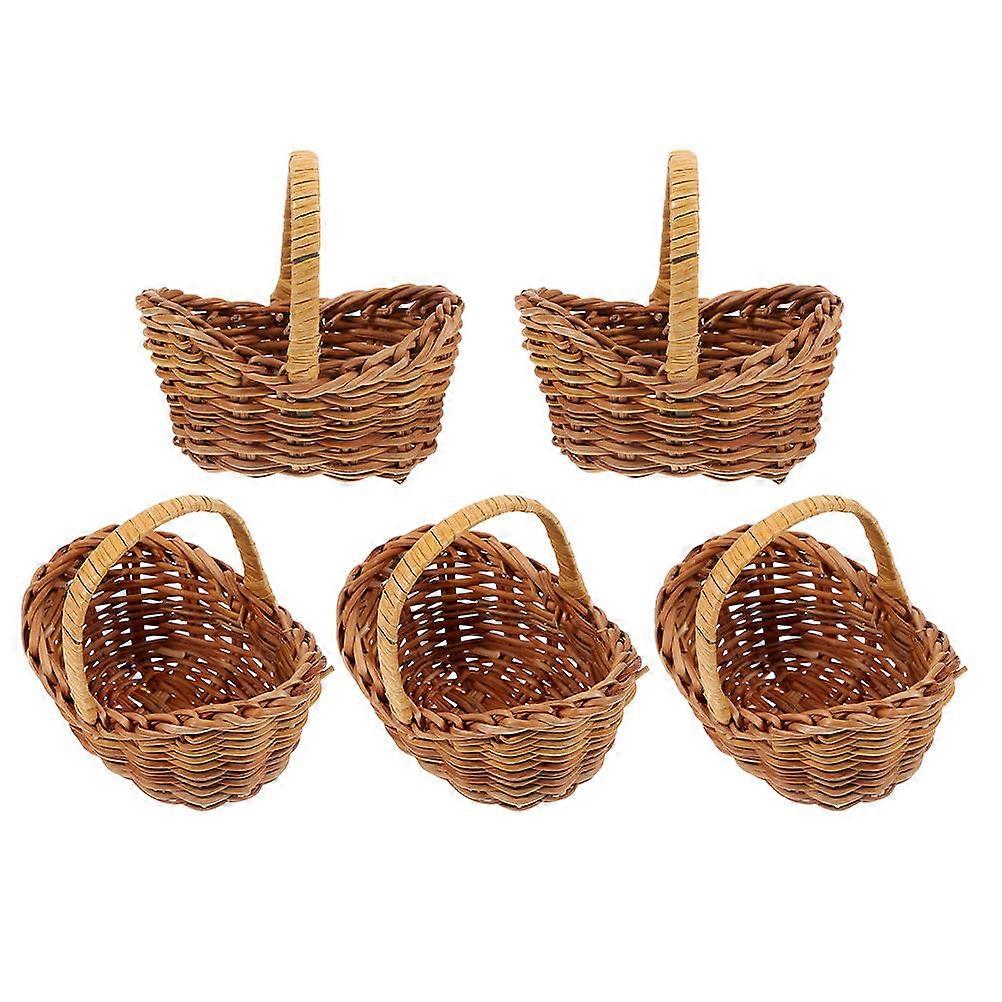 Woven Basket Small Baskets With Handle Rustic Charm Egg-Shaped Brown Wedding Present Gift Storage 3×3×2.2in 5Pack