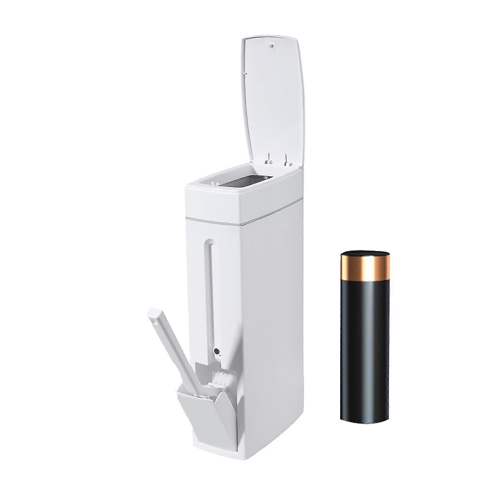 Bathroom Trash Can Slim Plastic Wastebasket with Toilet Brush 4.5L Garbage Bin