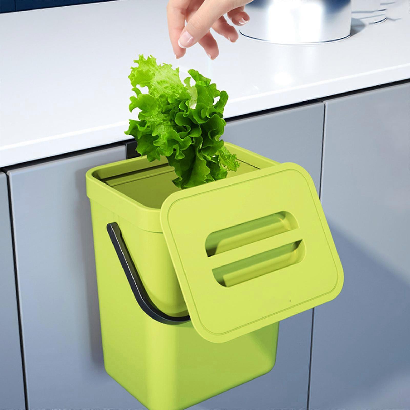 Kitchen Trash Can with Handle,5l Hanging Trash Can for Kitchen Cabinet Door,Kitchen Trash Can with Lid To Hide OdorGreen