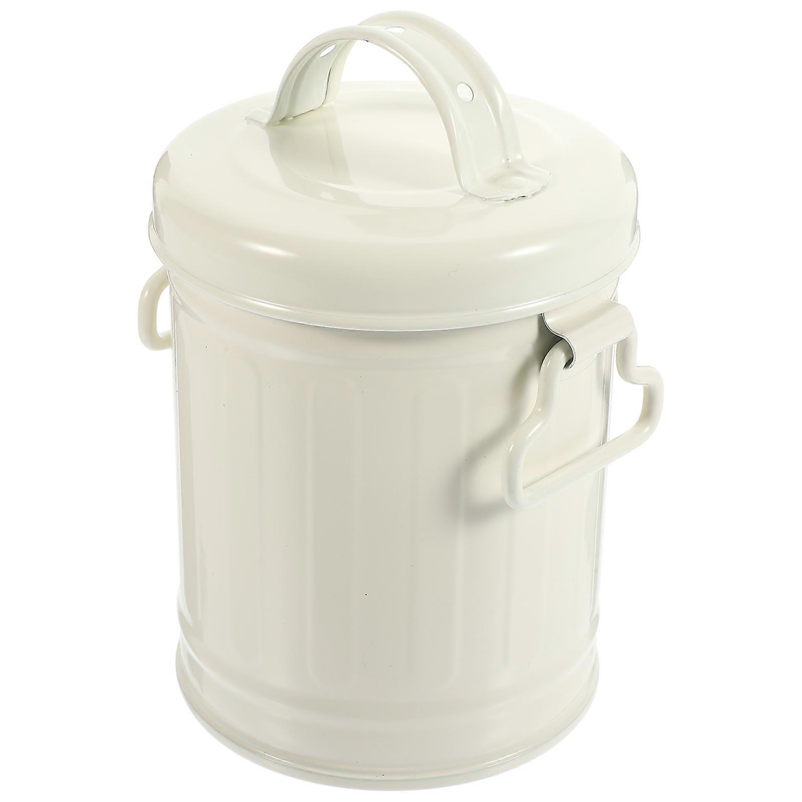 Mini Desktop Trash Can and Pen Holder with Lid for Makeup Brushes Iron Storage Bucket