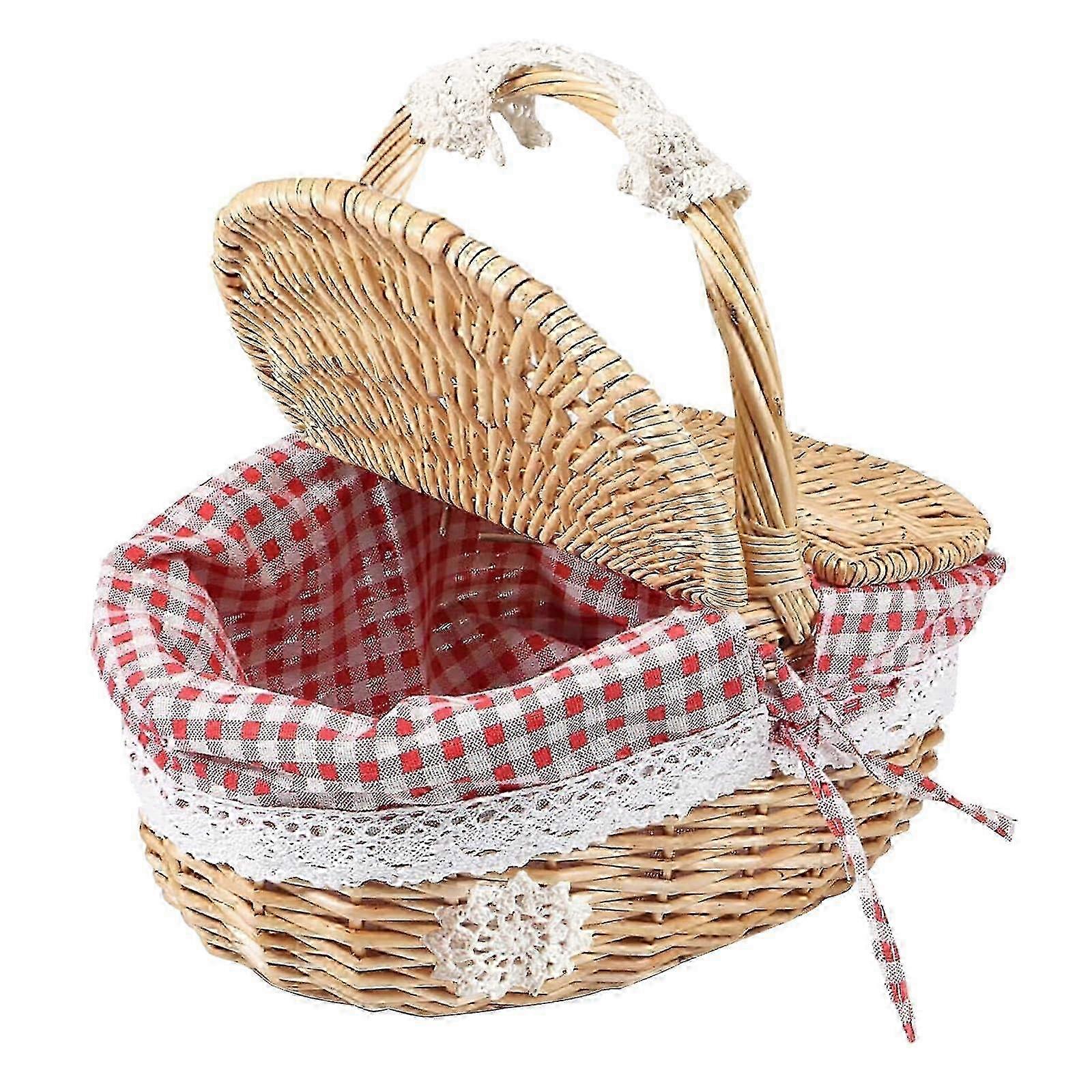 Picnic Basket with Lid and Handle, Oval Rattan Storage Basket
