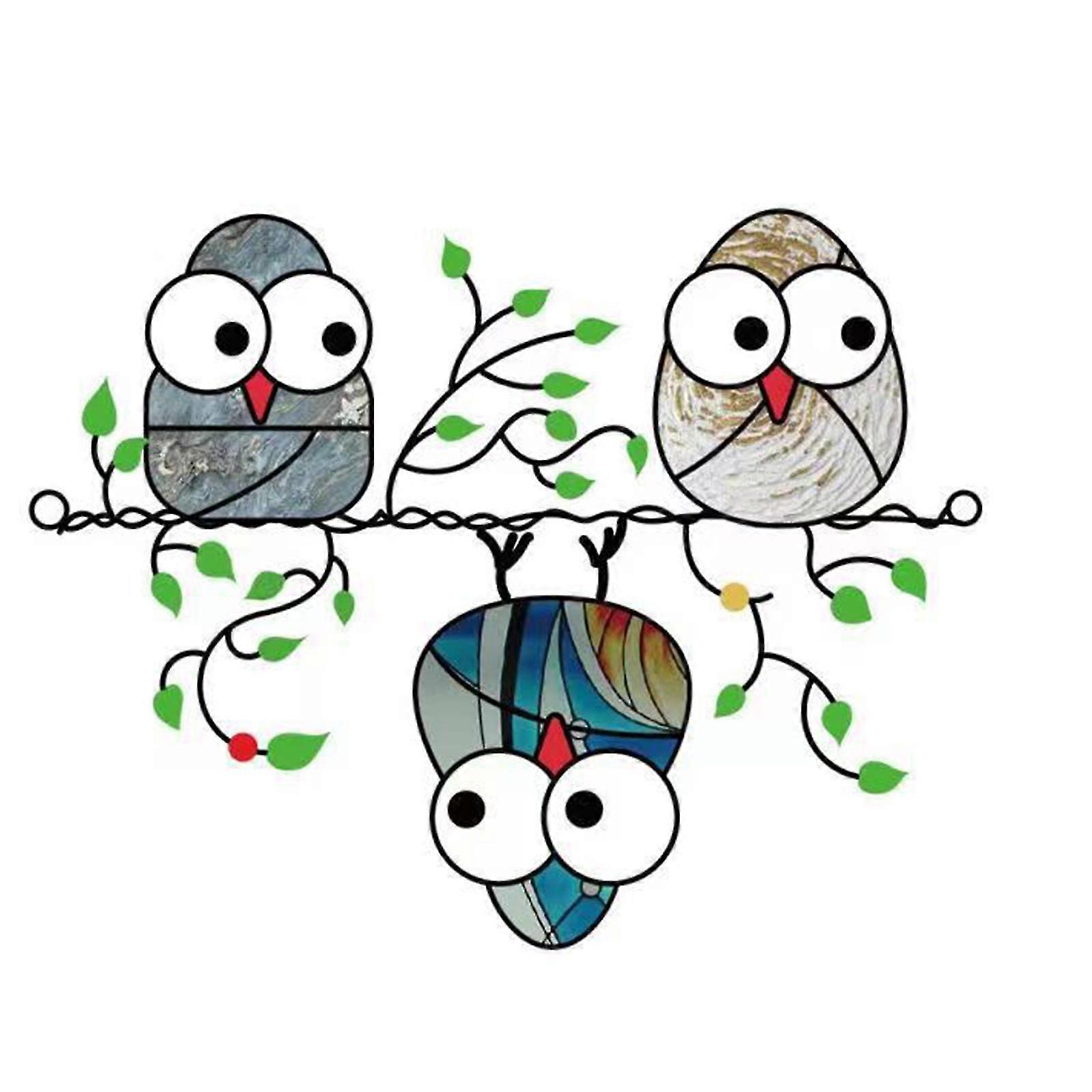 Bird Series Suncatcher Cartoon Cute Birds with Big Eyes Hanging Wall Ornament Birds on A Wire Home Garden Decoration