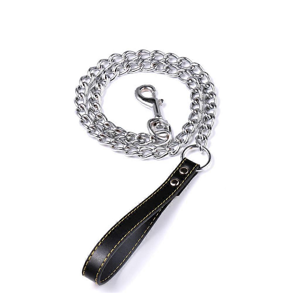 Pet Dog Walking Training Chain Lead Puppy Leash with PU Leather Handle(Black 2mm*120cm)