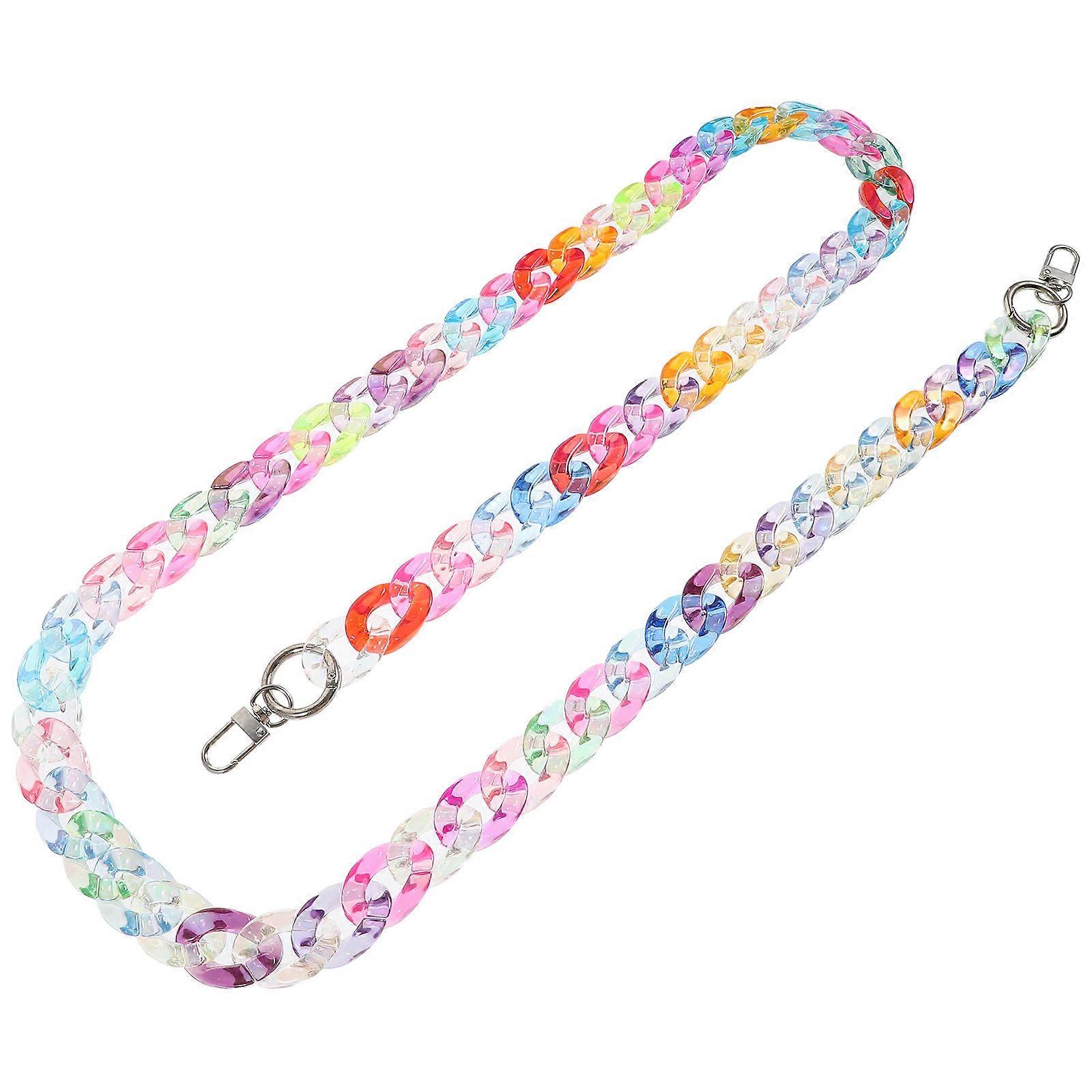 This product is a bag chain, made of acrylic material, with good durability. With stylish design, the chain can be used as a replacement chain for the bag, or it can be used as a decorative chain on the bag, which is not easy to fade and deform. Features -Color:Multi -Material:Acrylic -Size:120.00X2.00X1.00cm/47.16X0.79X0.39in - Wide range of applications: suitable for shoulder bag, purse . You can use them instead of regular or old ones. - Every small part of the button is connected well, not easy to fall off when using, more assured. - The chain has two buckles at both ends that are very easy to connect to your bag, with a detachable design for your convenience. - With a refined look and comfortable feel, this bag chain is the perfect replacement for broken or old bag chains. - Bright colors are easy to catch the eye, which can make your bag more fashionable and eye-catching. Package list: 1 x Chain