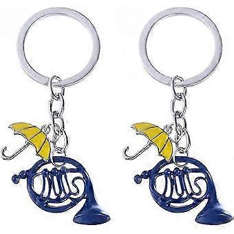 French Horn Keychain, 2 Pieces Blue Enamel Umbrella Horn Pendant, How I Met Your Mother Keychain, Gifts for Parents, Birthday Gifts