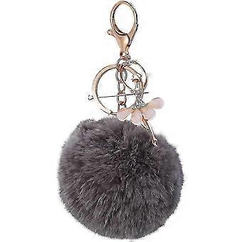 Bobble Keychain, Fur Pompom Bag Charm, Charm With Rhinestone And Ballet, Girl Keychain