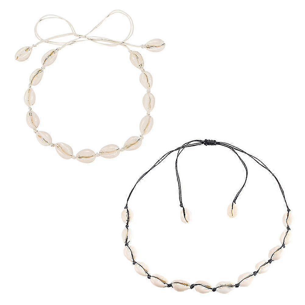 Pure Handmade Shell Necklace Clavicle Chain For Women, 2 Pieces Sold For 1 Piece, , Stretched Black String, Untied White, 40-85cm, Material: Shell
