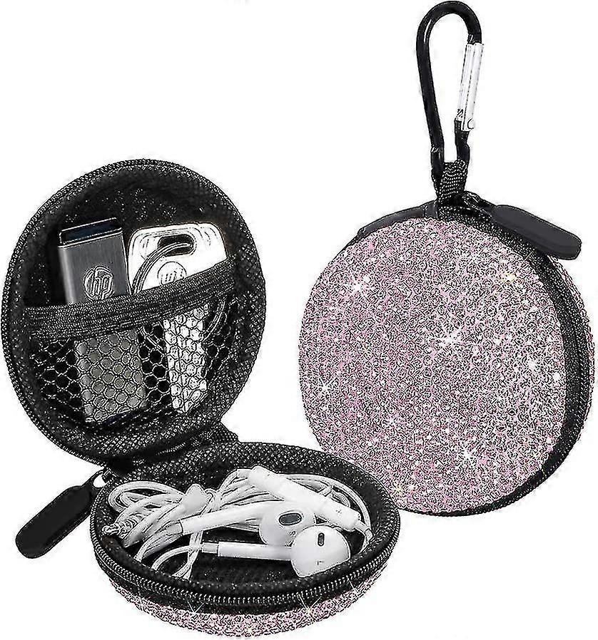 Earphone Case Earbuds Small Carrying Cases Bling Rhinestone Crystal Portable Headphone Organizer Storage Pouch Bag With Carabiner (ab Color)