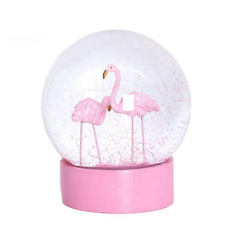 Snow Globe, Pink Flamingos Snow Globe for Kids, Glitter Glass Snowglobes for Women Girls, Snow Globes Home Office Table Decor Birthday Gift, 100MM Pin