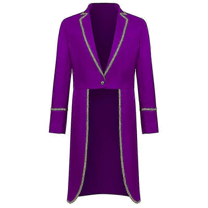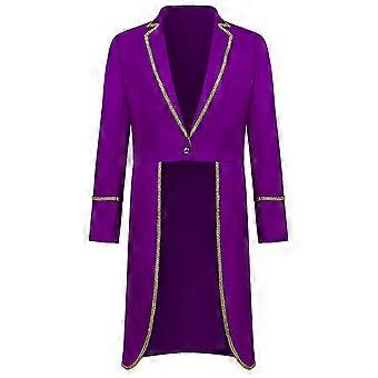 Mens Tuxedo Medieval Retro Punk Gold Trimmed Overcoat Carnival Party Costume