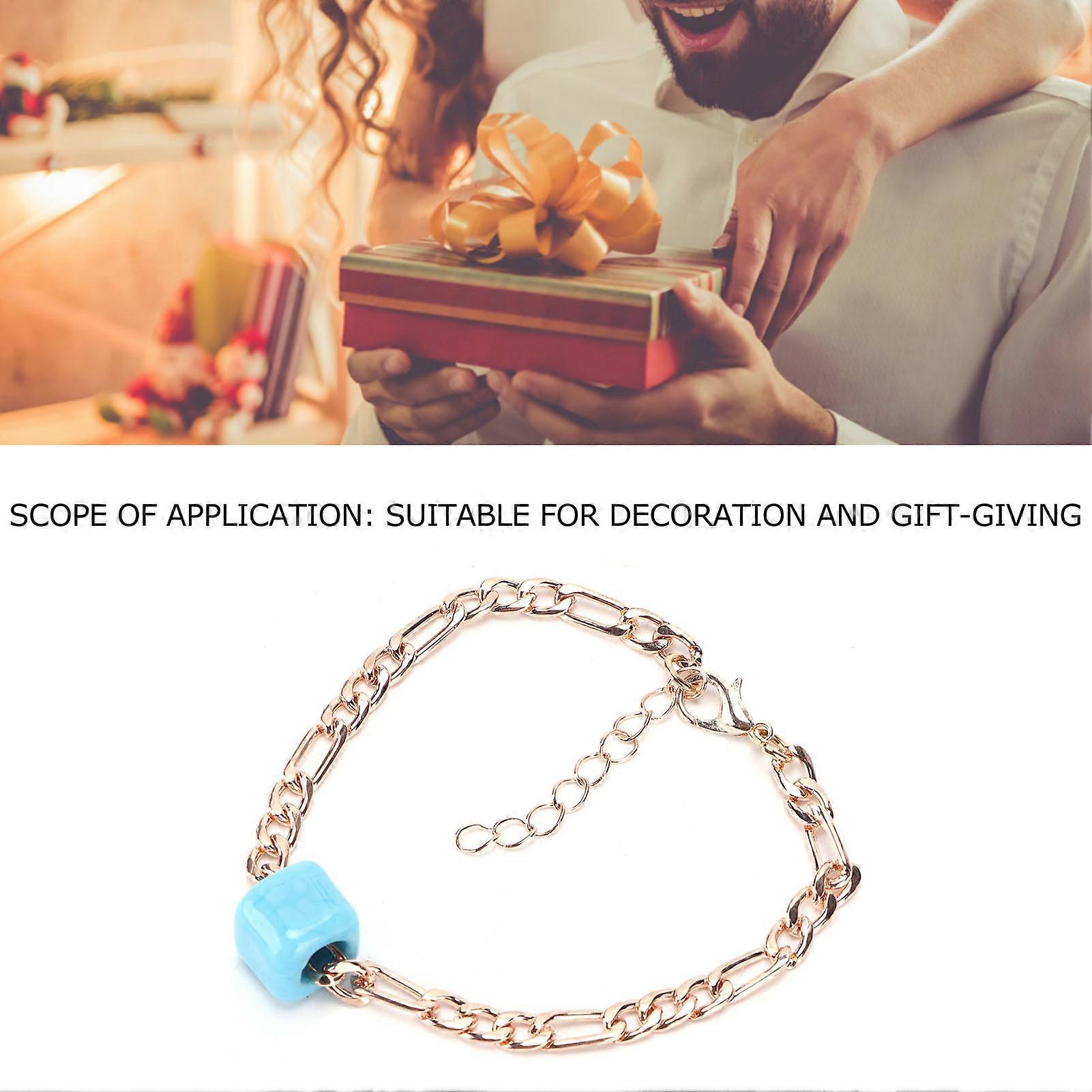 Glass Bead Bracelet Square Big Hole Blue Glass Bead Geometric Bracelet for Decoration GiftGiving(Rose Gold Bra )