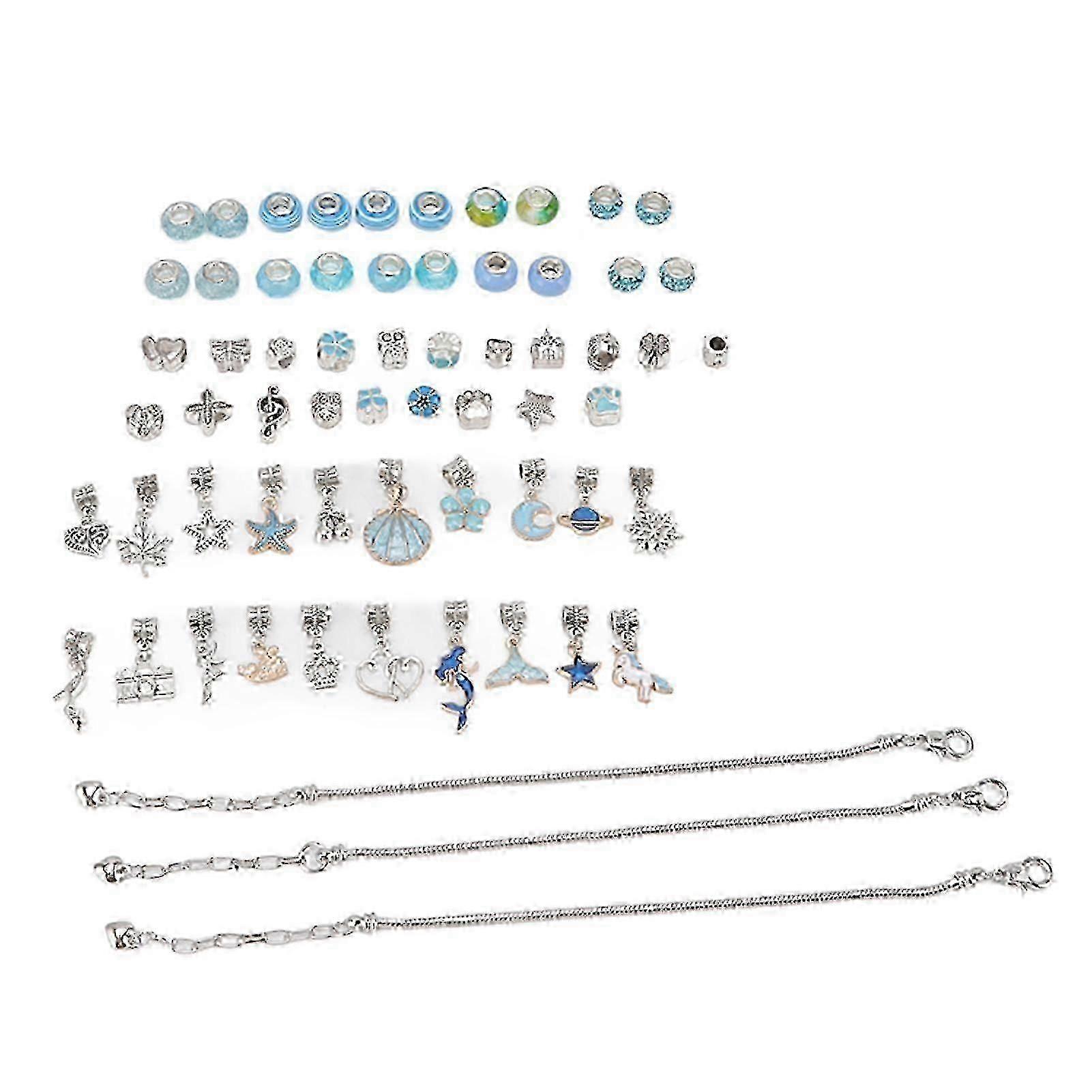 Bracelet Making Kit Cute Exquisite DIY Jewelry Blue Bead Pendant Craft Set with Storage Box for Kid Girls