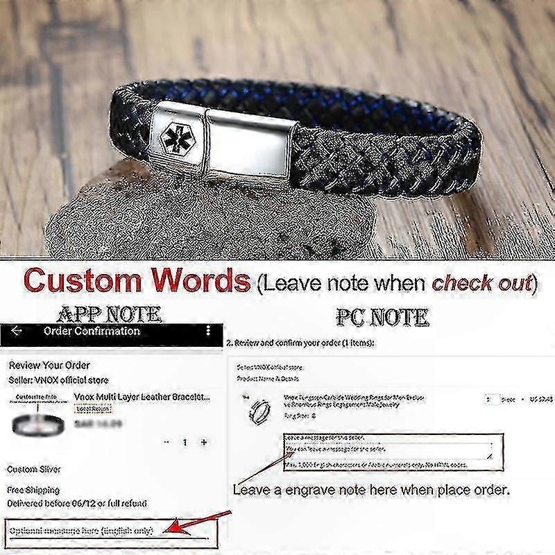 Men's Braided Leather Medical ID Bracelet with Custom Clasp for Health Conditions