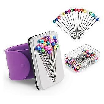 Magnetic Pincushion Wristband with 100 Pcs 1.5 Inch Ball Head Sewing Pins Set,Silicone Wrist Pin Hol