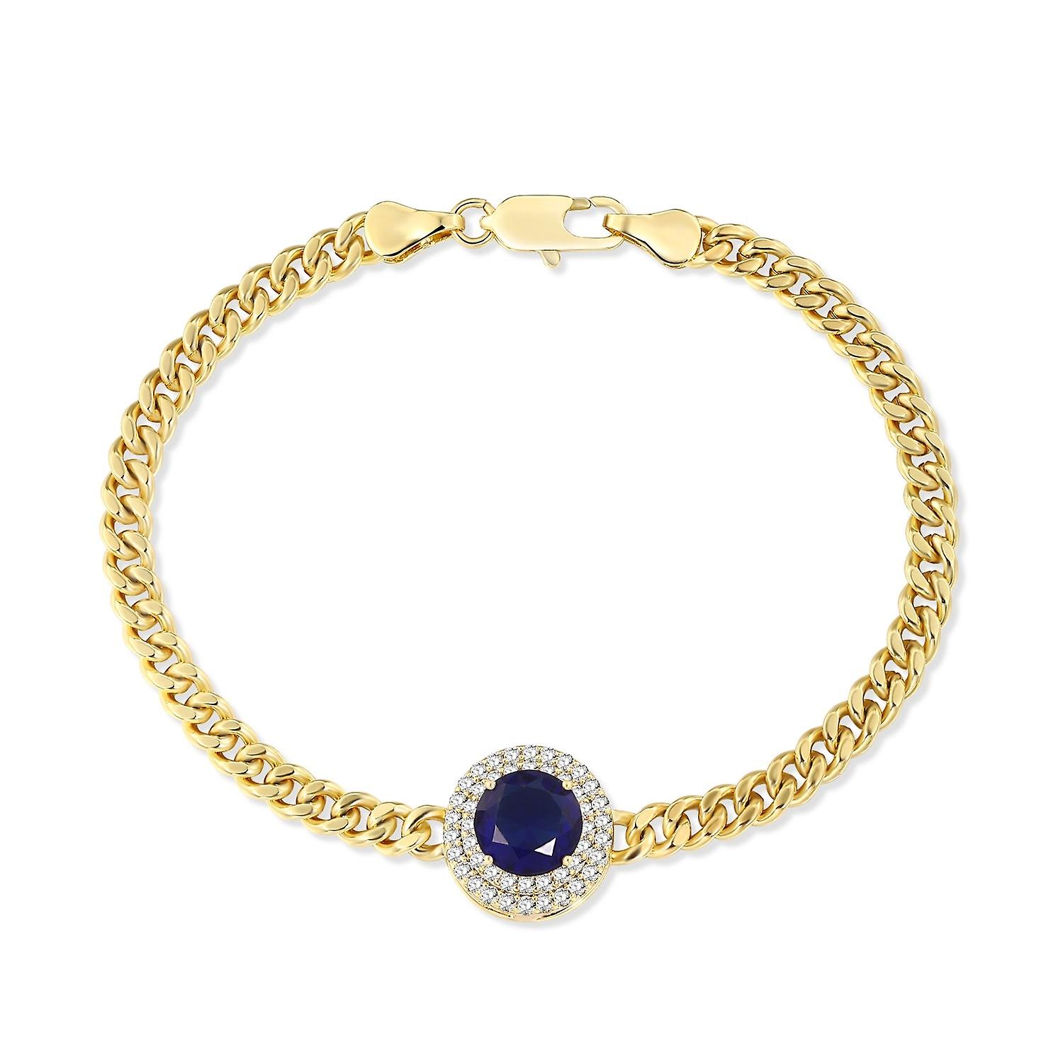 Luxury 13mm Round Gemstone Copper Bracelet with Diamond Accent, Golden Lobster Clasp, 7in Length