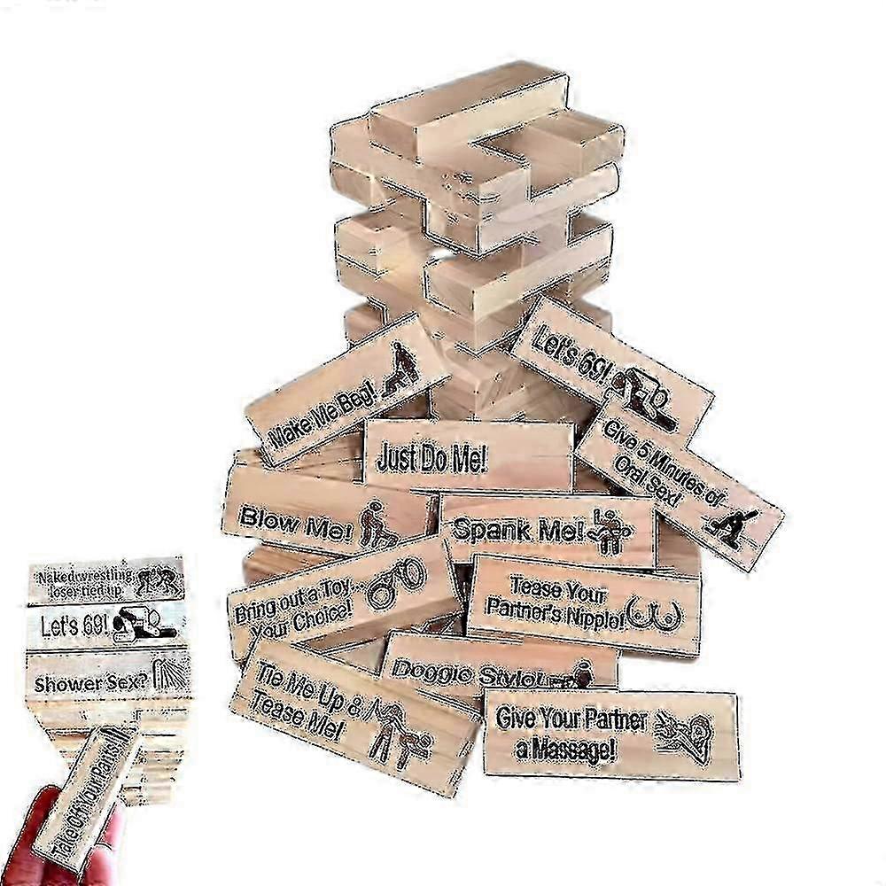Naughty Block Tower GameThis adult version of the classic Tower Stacking Blocks game features prompts and challenges, adding an enticing twist to the traditional game.Quality and DiscretionCrafted with care and packaged discreetly, this game ensures both laughter and intimacy, all in the spirit of good fun.Unforgettable MomentsWhether you're gifting it or enjoying it together, the Super Naughty Block Tower Tower Game promises to create unforgettable and romantic Christmas memories.Passionate EntertainmentPerfect for couples and romantic partners, this funny stacking tower game brings a touch of sensuality and humor to your holiday celebrations.Memorable and AdventurousCustomization adds a personal and intimate element to your Christmas, ensuring it's a holiday you won't forget.