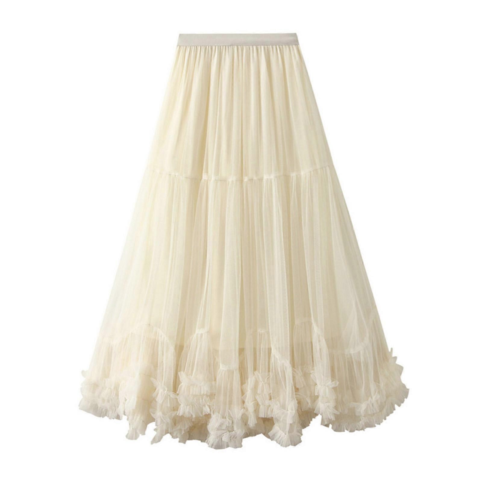 Super Sense Fashion Gauze Skirt Sweet Wooden Ear Lace A Big Pommel Skirt Mid-calf Skirt