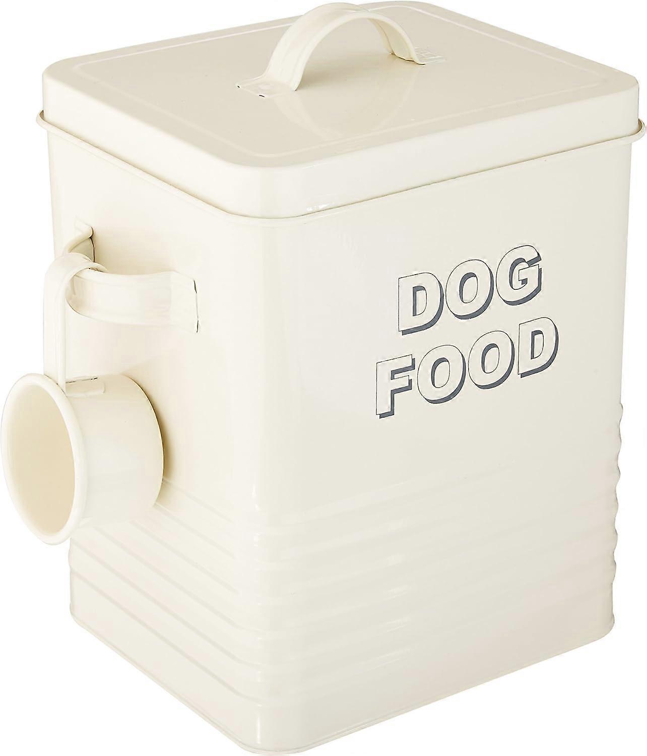 Sweet Home Cream Dog Food Storage Tin with Scoop, Steel(1pc-cream colour)