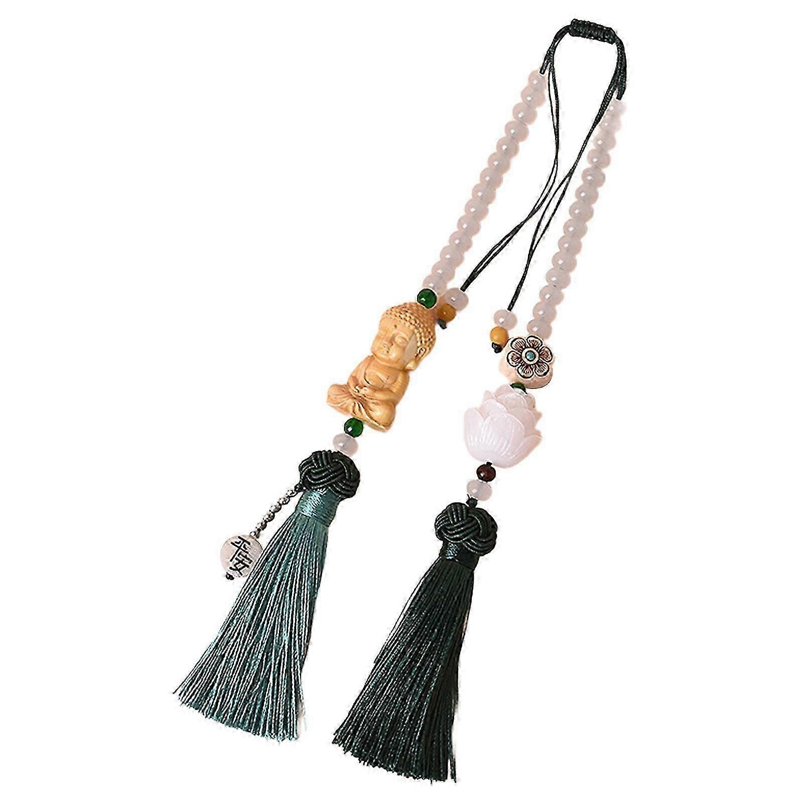 Car Rear View Mirror Pendant, Buddha Statue Hanging Ornament Decoration Lotus Bead Charms for Garden, Door, Window, Backyard